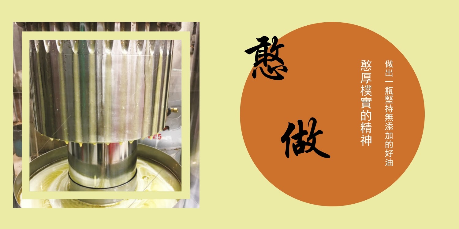 我們採用獨家與德國開發的搾油機械,靠著強大力量下去製作油品,製作完立刻裝瓶販售。所以您吃到的油品,絕對是最新鮮,最純淨的好油。