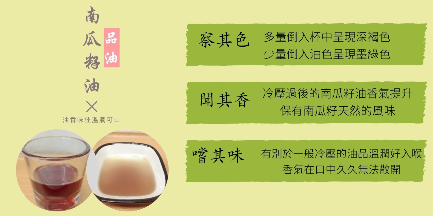 采懋新產品南瓜籽油,嚴選優質上等南瓜籽,無農藥、無化肥的自然農作法,取得第一道初榨南瓜籽油,採用先磨粉、後壓榨,這樣萃取出來的油才是最精華的。